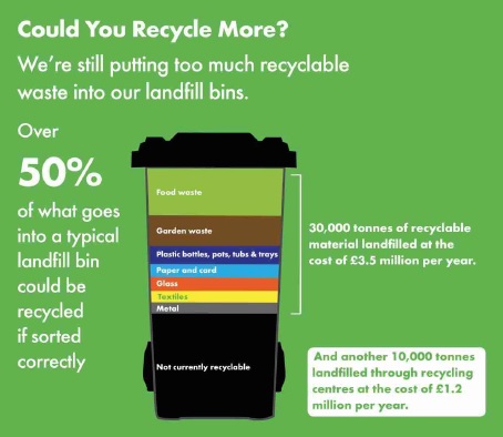 According to the council, an analysis of the residual waste collected from the kerbside suggests that as much as 30,000 tonnes of additional recyclable or compostable material is collected every year, at a disposal cost of £3.5 million.
