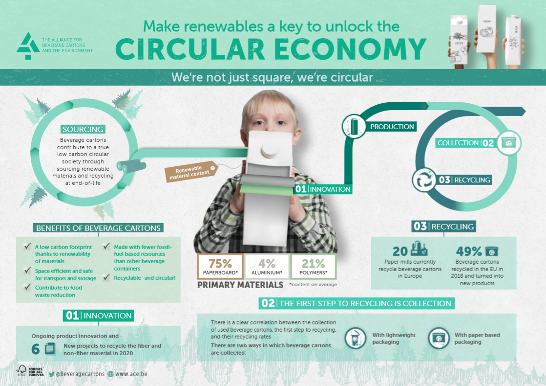 Annick Carpentier, director general of ACE, said: “Beverage cartons provide a double circularity, at sourcing thanks to the renewability of their main components and at end-of-life through recycling. This double circularity helps ensure that beverage cartons play a role in helping achieve a low carbon circular economy.”