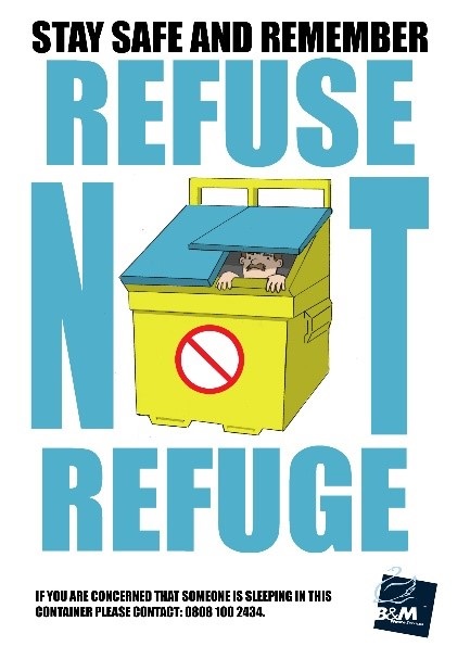 “Unfortunately, there have been a number of fatalities in the industry where people have been injured and even killed after sleeping in a bin,” B&M says.