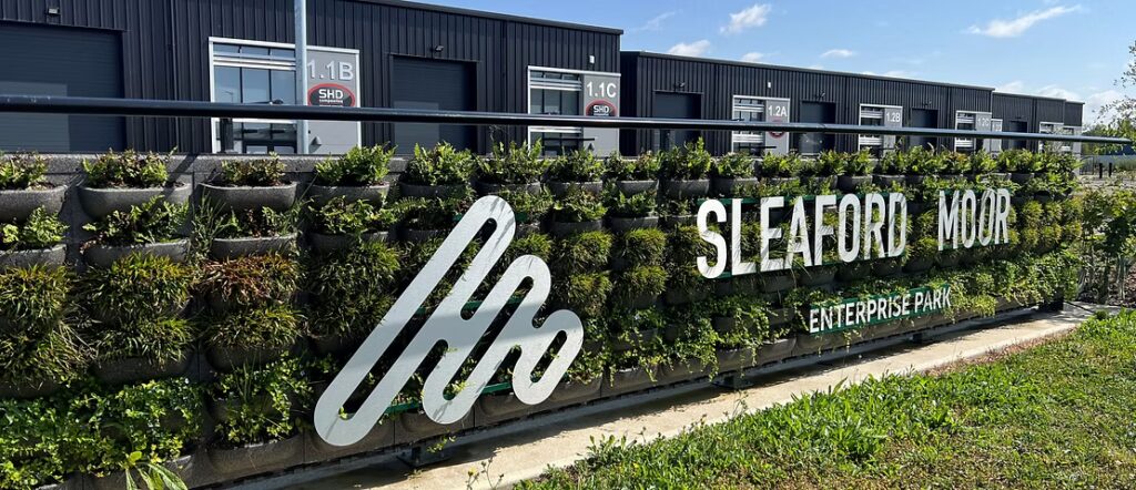 Phase one of Sleaford Moor Enterprise Park – which takes in 15 units across plots one and three – contains carbon conscious measures such as solar panels and EV charging points, as well as energy-saving specifications within the units and a design that includes native plants and trees and other biodiversity features. The ecoPlant would be sited on the next plot to come – plot two.