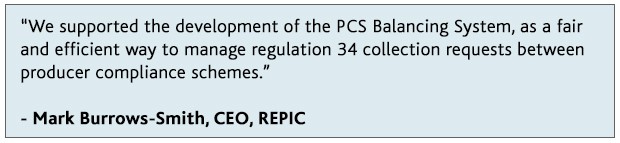 Mark Burrows-Smith, CEO of REPIC the largest WEEE producer compliance scheme in the UK, commented: “We are in favour of the proposal to place the PCS Balancing System (PBS) on a statutory footing. We supported the development of the PCS Balancing System, as a fair and efficient way to manage regulation 34 collection requests between producer compliance schemes.”