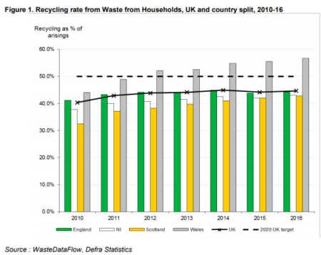 However, the increase has been credited partly due to the inclusion of incinerator bottom ash (IBA) metals in the figures, rather than advances in dry recycling from households. This has led to continued concerns that the UK may fail to meet an EU target of 50% by 2020.