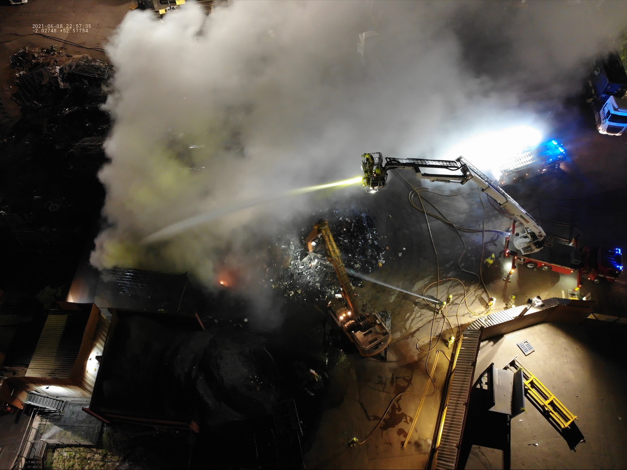 The fire service said EMR staff helped tackle the blaze by using machinery such as diggers to break up burning items.