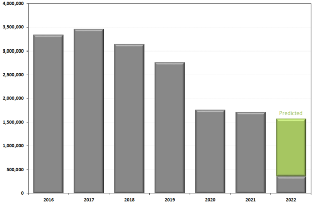 The consultancy firm Footprint Services compiled a report on the data, and estimated that exports will remain around 1.5 million tonnes in 2022, broadly similar with the previous two years.