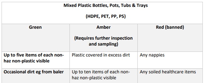 For mixed bottles, pots, tubs and trays, the guidance states that flies appearing when opening container doors would fall under the amber heading, for example. The guidance completely bans any nappies or “soiled healthcare items”.