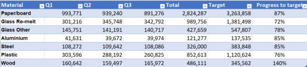 Martin Trigg-Knight, head of packaging at the compliance scheme Clarity Environmental, told letsrecycle.com: “The Q3 figures, along with the confirmed recycling targets for this year, provide a mixed view across materials.