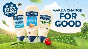 Hellmann’s, one of Unilever’s largest food brands in the UK, has begun moving its full ‘squeezy’ range in the UK to bottles made with 100% post-consumer recycled PET plastic.