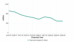 In the financial year ending 2022, the receipts increased compared to the previous year which HMRC attributed to the COVID-19 pandemic. Receipts have returned to a decreasing trend in the financial years since.