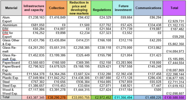 The figures and spending/support categories were released by the Environment Agency at the end of April, and show the breakdown of revenue for each material, and how this was spent.
