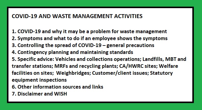 The document will sit alongside United Kingdom Government and other coronavirus advice, such as from the Health and Safety Executive (see letsrecycle.com HSE story HERE). The WISH work is expected to attract international attention as many countries are seeking advice on waste management and COVID-19 although WISH has emphasised that it is currently (as of 28 March) still a draft document for consultation.