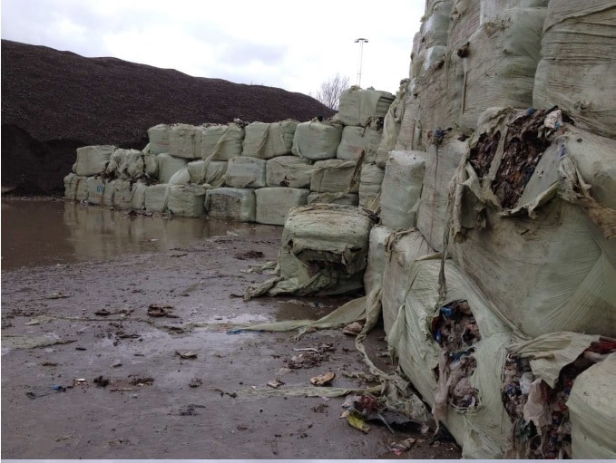The report also notes “bad smells” and plastic, electrical waste and empty motor oil packaging in some bales, with the wrapping “so bad that the bales are already broken during the unloading procedure”.