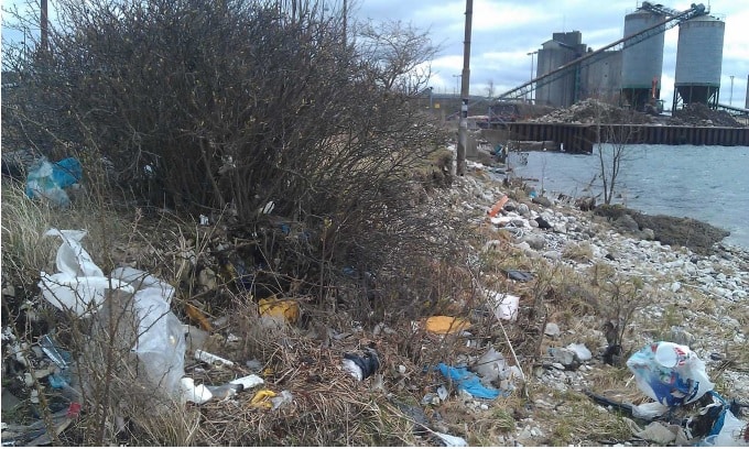 The document includes photos and reports from inspections carried out in September 2014 following complaints, which found defective packaging “often bursting at unloading so that the waste is spread over the vessel edge and dock and can easily blow away”.