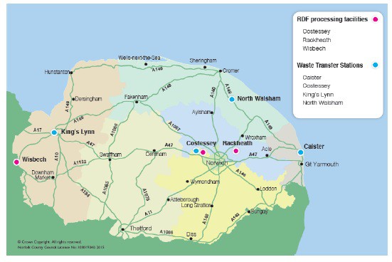 Under the contracts, household waste would be sent to waste transfer stations at Costessy, Rackheath and Wisbech to remove metals for recycling before the remaining material is processed into RDF and sent to CHP facilities in the Netherlands and Germany.