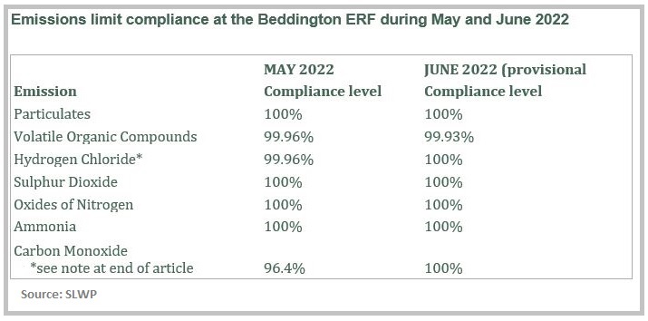 “On the whole, the Beddington ERF continues to perform well. Even in the two months that we have raised concerns about (May and June 2022), compliance remained high (see table below). But the SLWP boroughs expect 100% compliance with the EA permit 100% of the time, and will use all of the mechanisms available to us in our contract with Viridor to ensure those high standards are met.”