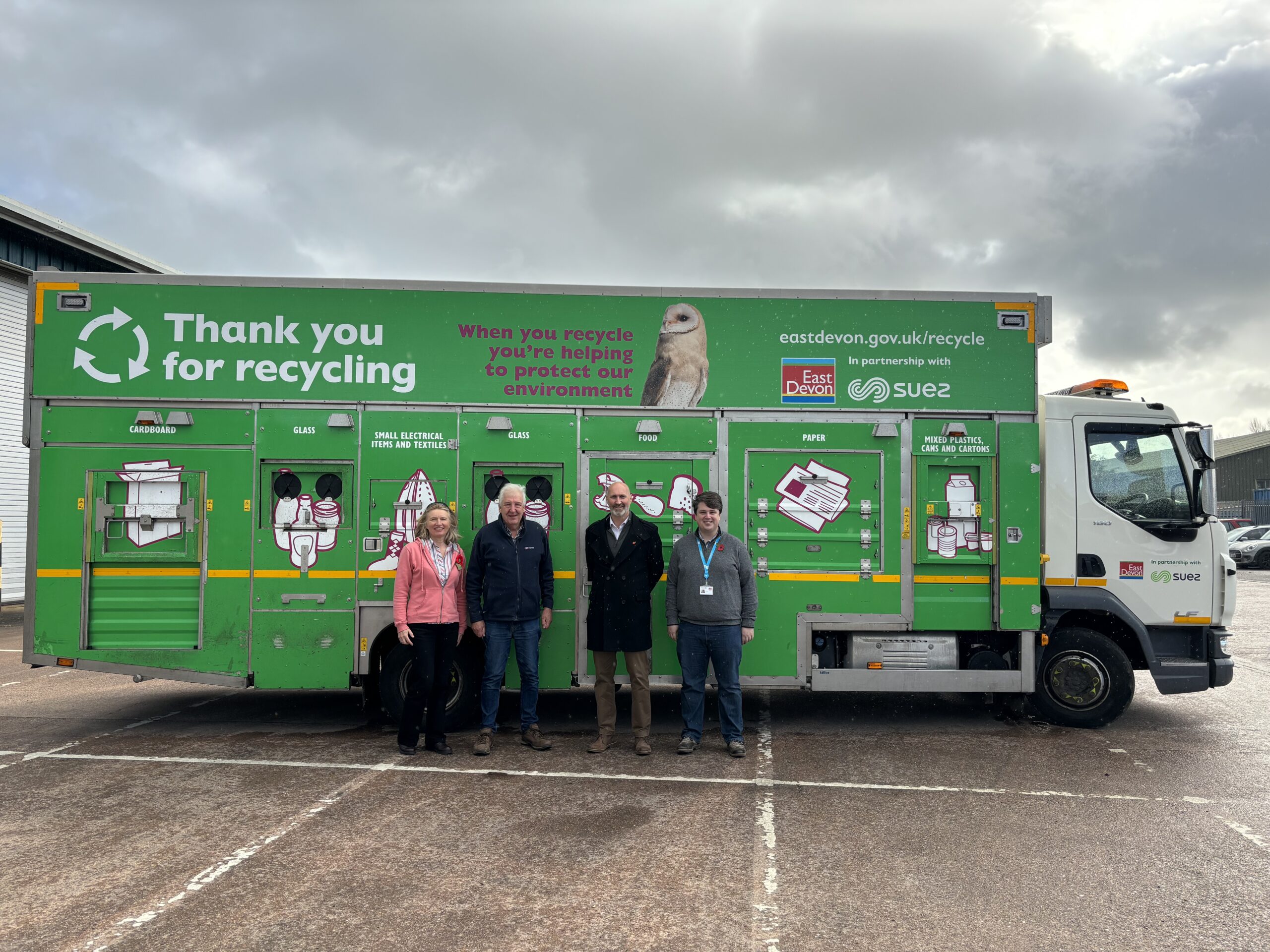 Suez collects on average 21,000 tonnes of recyclable materials, 6,400 tonnes of garden waste, and 18,000 tonnes of residual waste (waste that cannot be recycled) each year on behalf of the East Devon district council, which serves around 145.000 people.