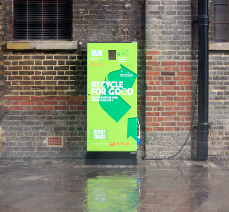 The reverse vending machine is located under West Handyside Canopy, adjacent to Granary Square in King’s Cross.