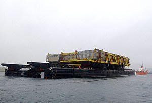 Aker Kvaerner Offshore Partner has delivered an 8,800 tonne module support frame by barge from TOTAL's Frigg field for decommissioning resulting in an upsurge in activity at the £1.2m SBS Logistics site.