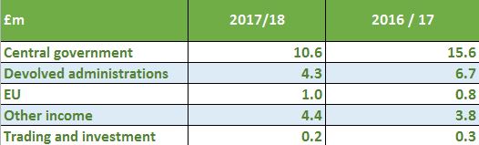 WRAP explained that further £1.5M of the decrease is due to the timing impact of a multi-year extension to the Rural Community Energy Fund received and recognised in 2016/17, against which expenditure continued to be incurred in 2017/18.